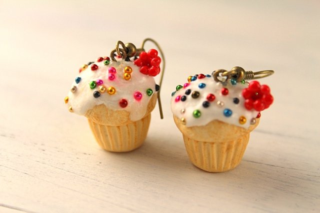 Witaj w moim sklepie. Mam do zaoferowania własnoręcznie wykonane z fimo kolczyki słodkie muffinki z malinami i kolorową posypką.