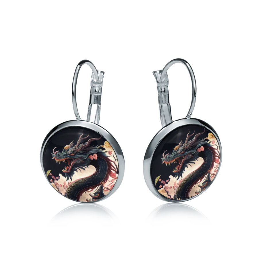 Kolczyki ręcznie robione z grafiką smoka– dodatek w orientalnym stylu