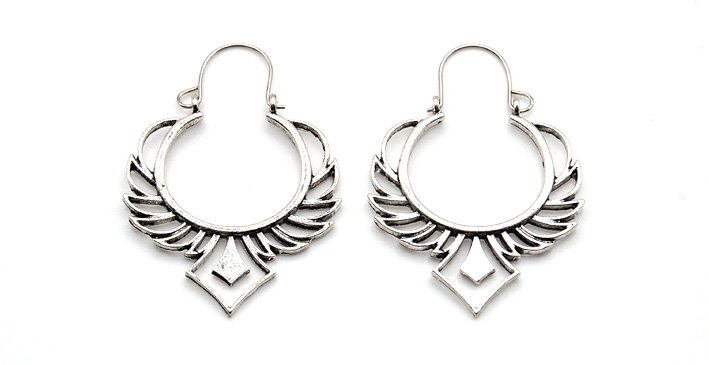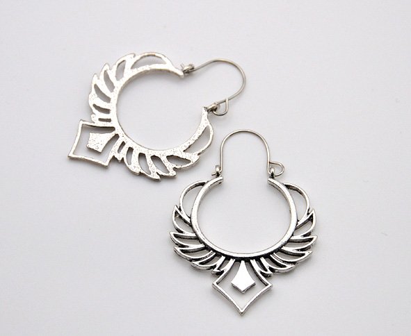 Nieduże, orientalne kolczyki wykonane z metalu - w kolorze starego srebra. Ciekawe, ażurowe. Zwracają uwagę.