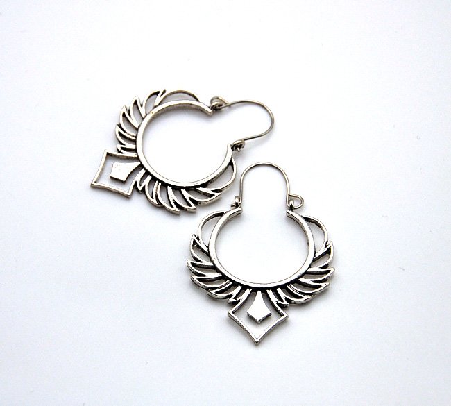 Nieduże, orientalne kolczyki wykonane z metalu - w kolorze starego srebra. Ciekawe, ażurowe. Zwracają uwagę.