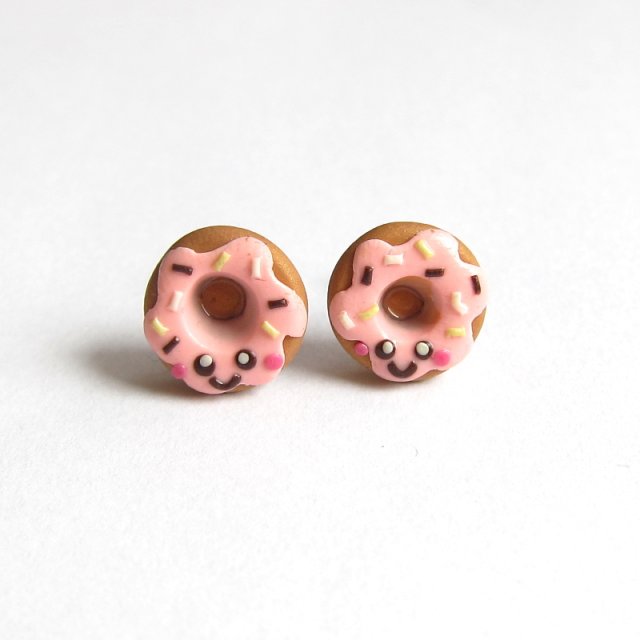 Zabawne kolorowe kolczyki pączki wykonane ręcznie z masy termoutwardzalnej Fimo. Wielkość kolczyków to ok. 12 mm. Sztyfty wykonane są ze stali chirurgicznej. Kolczyki świetne na prezent dla małych i dużych dziewczynek:)