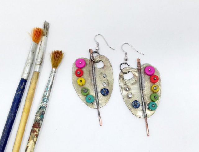 Kolczyki wykonane z blachy alpakowej i mosiądzu.
