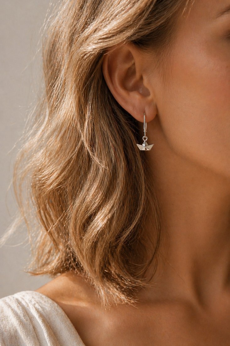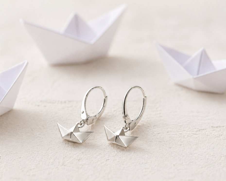 Tagi: #geometryczne kolczyki, #origami, #srebrne kolczyki próby 925, #łódka