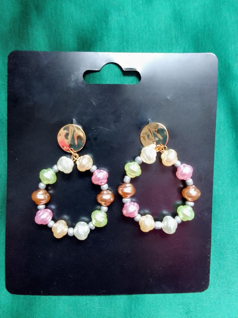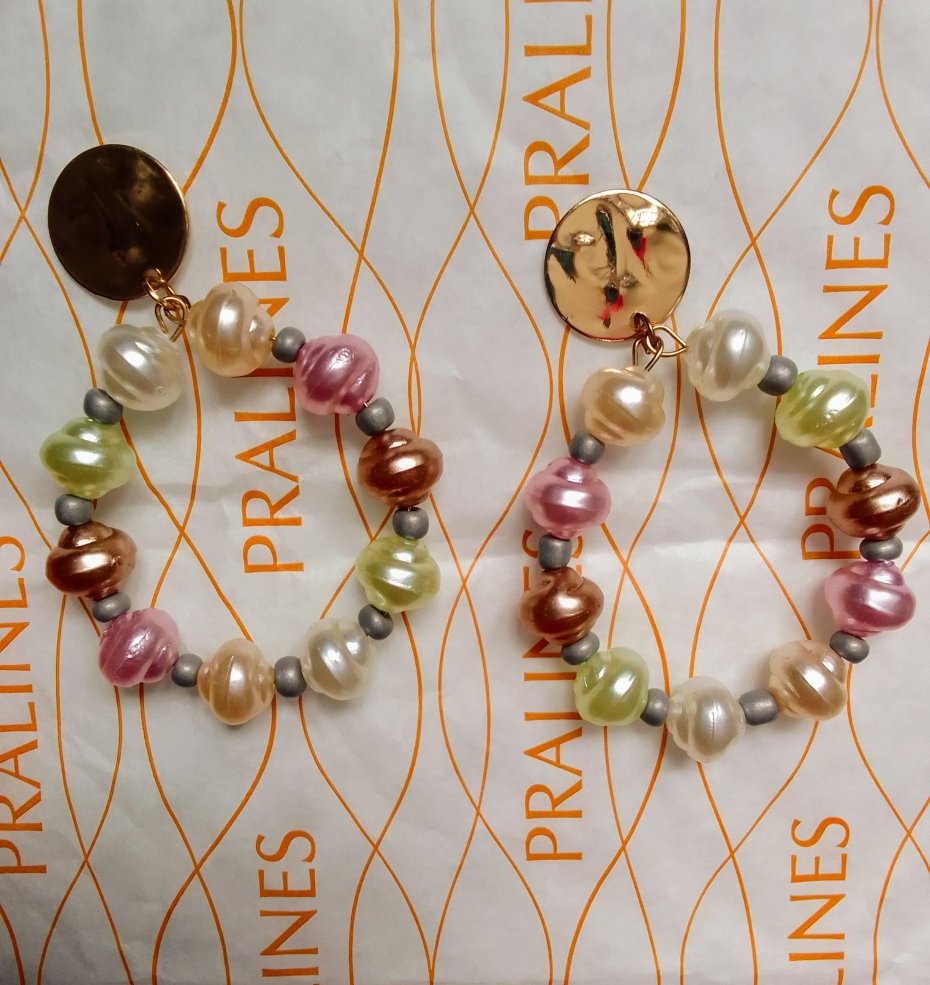 Lekkie kolczyki wiszące, imitacja złota i pereł.