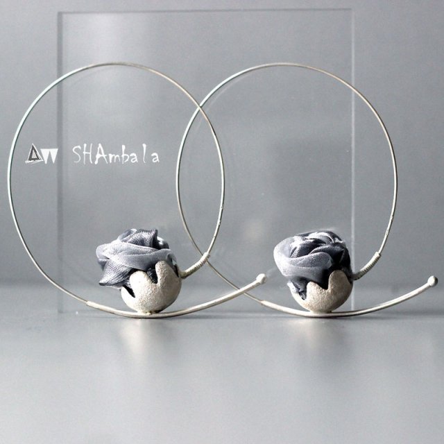 Niezwykłe, ekscentryczne kolczyki z serii PĄCZKI małe, koła. Awangardowe i oryginalne, przepięknie prezentują się na uchu. Wykonane zostały z białego srebra i jedwabnej, srebrnej organtyny. Całość utrzymana jest w mroźnej stylistyce, co jest dużym atutem kolczyków. Obręcz zamyka się w wymiarach 6 na 7 cm. Średnica srebrnego pączka to ok. 1,6 cm. Gorąco polecam:)