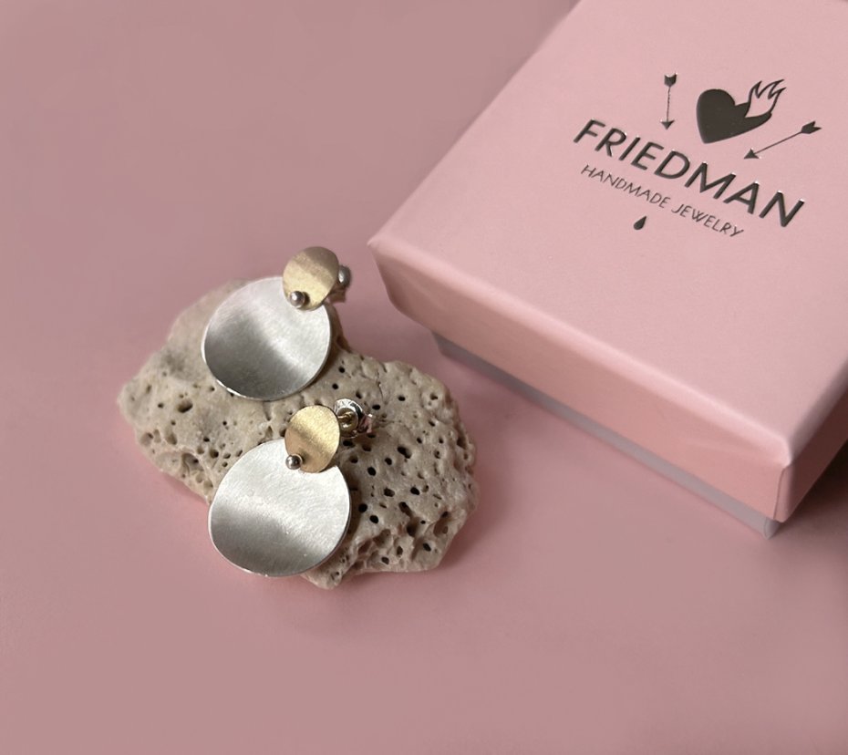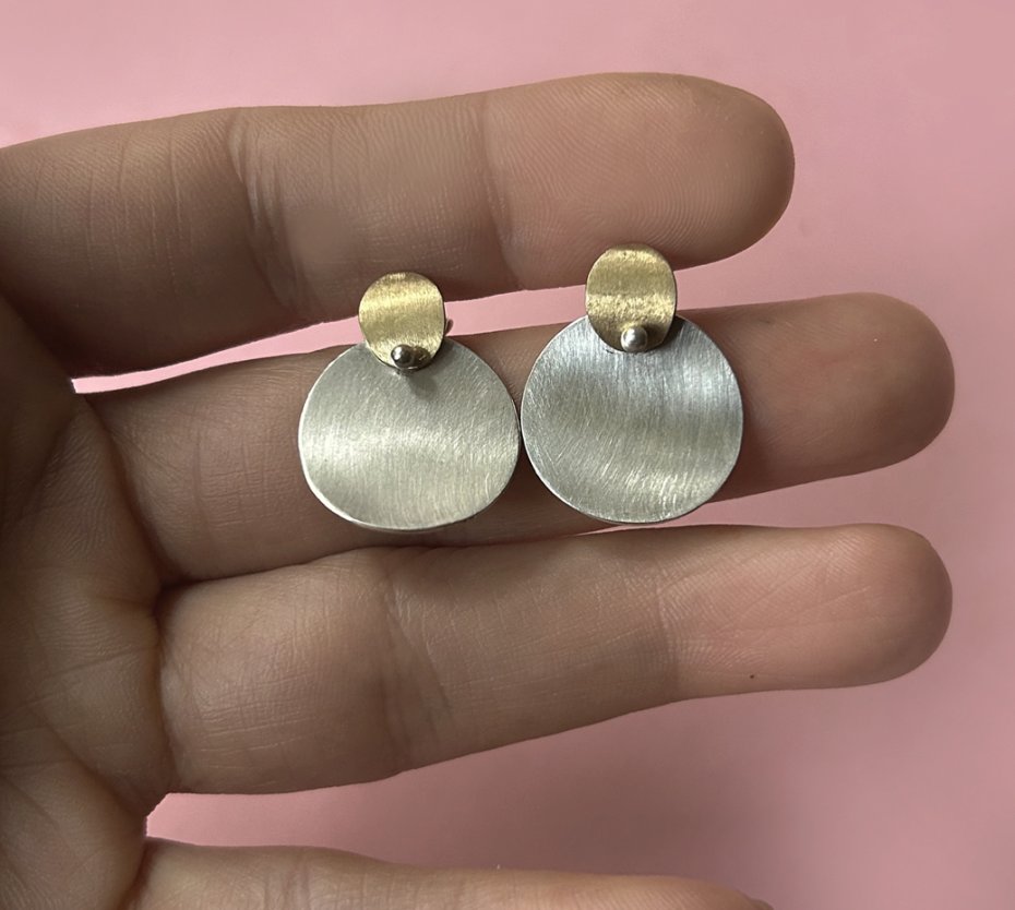 Efektowne kolczyki wykonane w całości ręcznie ze srebra pr. 925 i 24K złota