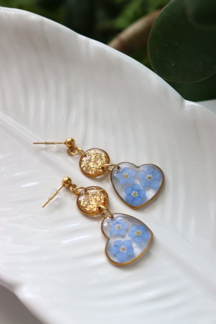 Tagi: #bizuteriazzywicy, #kolczykiserce, #kolczykizniezapominajkami, #naturalnekwiaty