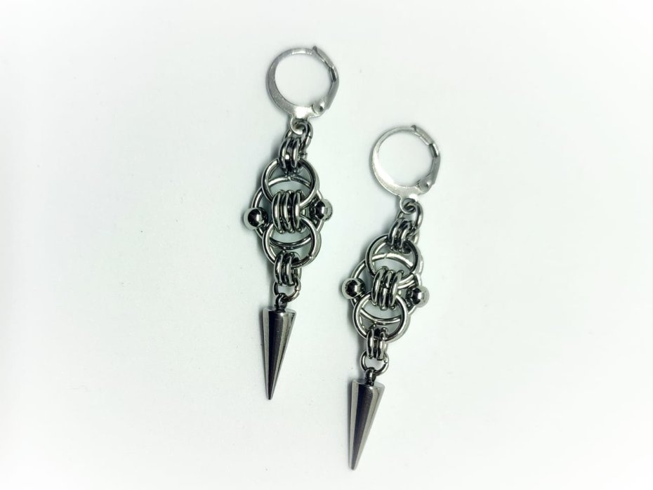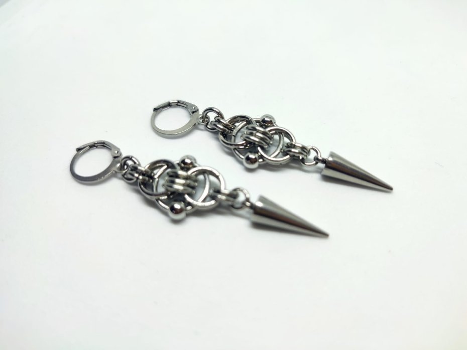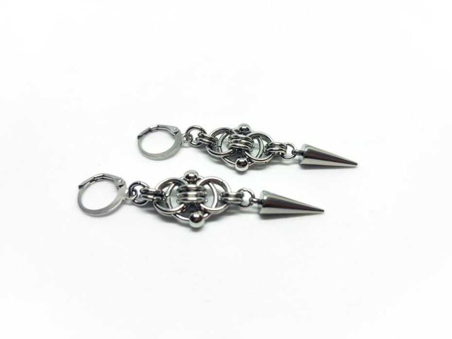 kolczyki punk, kolczyki stal chirurgiczna, industrial earrings, kolczyki handmade, goth fashion, punk biżuteria, earrings spikes, kolczyki alternatywne, chainmail earrings, kolczyki unisex, kolczyki rockowe, jewelry alternative, cyberpunk accessories, kolczyki kolce, metalowe kolczyki, chainmaille earrings, kolczyki fetish, kolczyki techno, statement earrings, edgy earrings