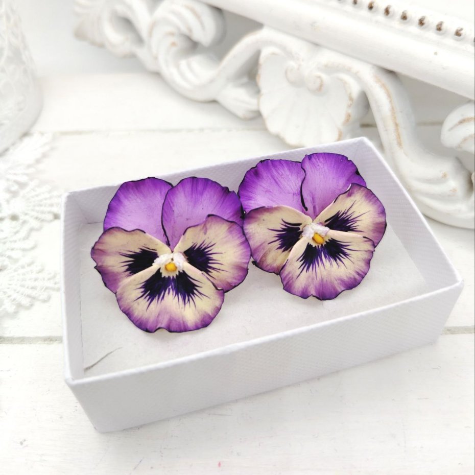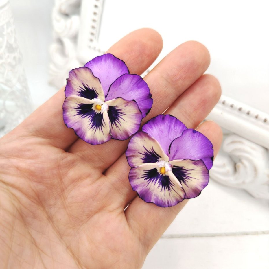 Tagi: #biżuteria kwiatowa, #hipoalergiczna biżuteria, #kolczyki z bratkami ręcznie, #kwiatowe kolczyki polimerowej
