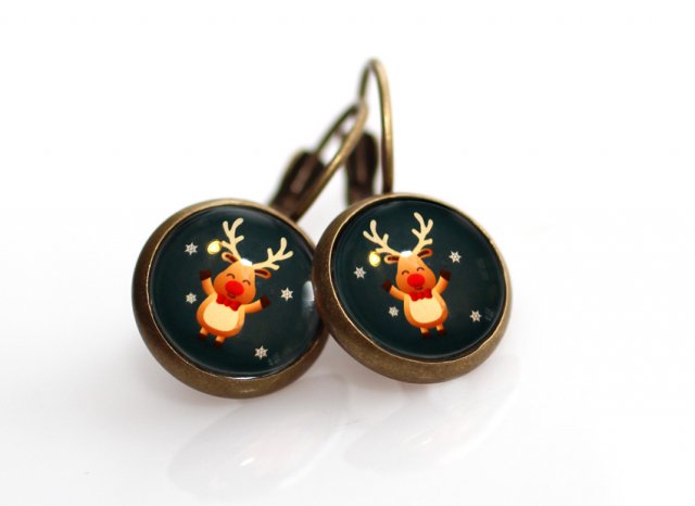 Kolczyki wiszące z wysokiej jakości grafiką pokrytą wypukłym, powiększającym szkiełkiem.