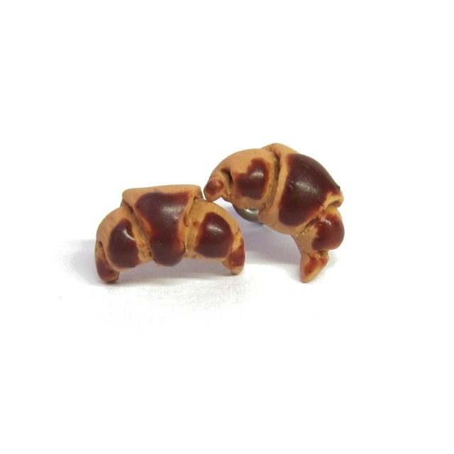 Zabawne kolczyki wykonane ręcznie z masy termoutwardzalnej Fimo w kształcie rogalików w czekoladzie. Wielkość kolczyków to ok. 15 x 10 mm. BSztyfty wykonane są ze stali chirurgicznej. Kolczyki świetne na prezent. Zobacz moją całą galerię w Decobazaar!