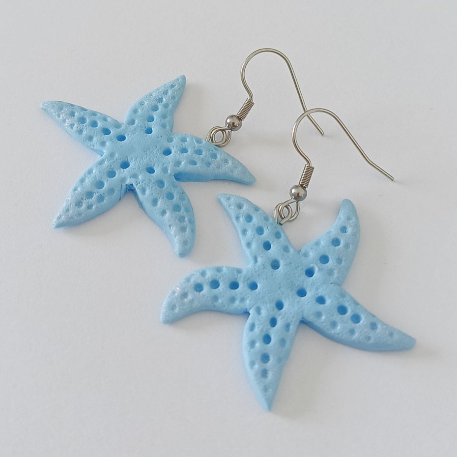 Ręcznie wykonane kolczyki w kształcie błękitnych rozgwiazd to idealny dodatek do letnich stylizacji. Lekkie, przyciągające wzrok i pełne wakacyjnego uroku – zabiorą Cię myślami nad morze, gdziekolwiek jesteś.