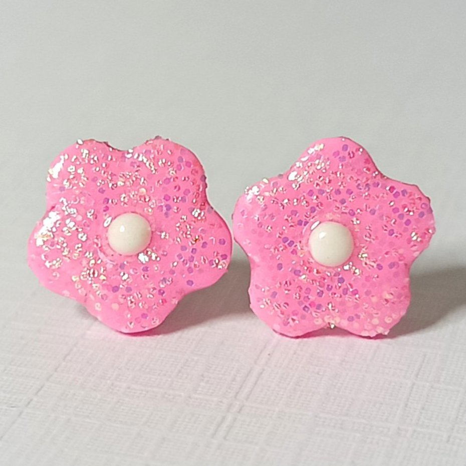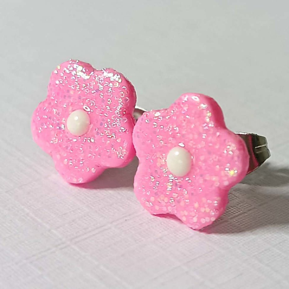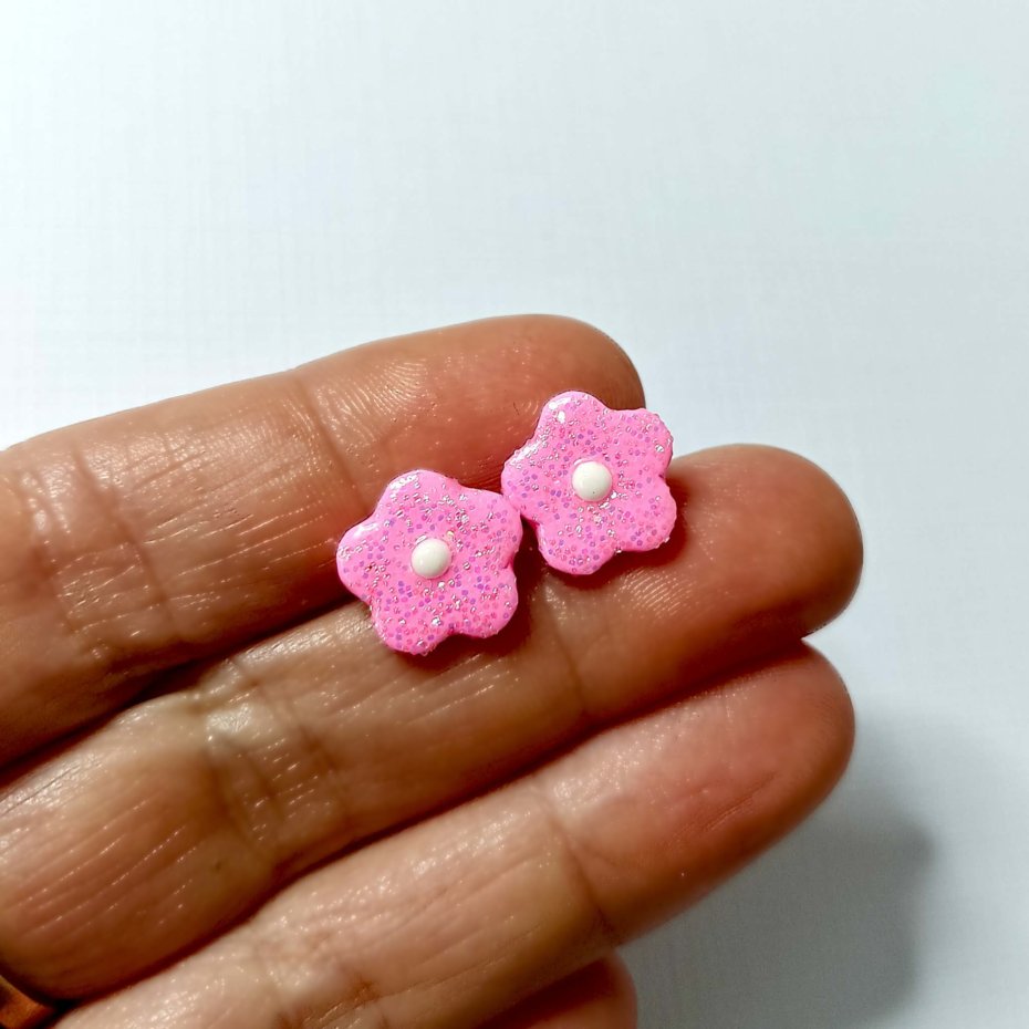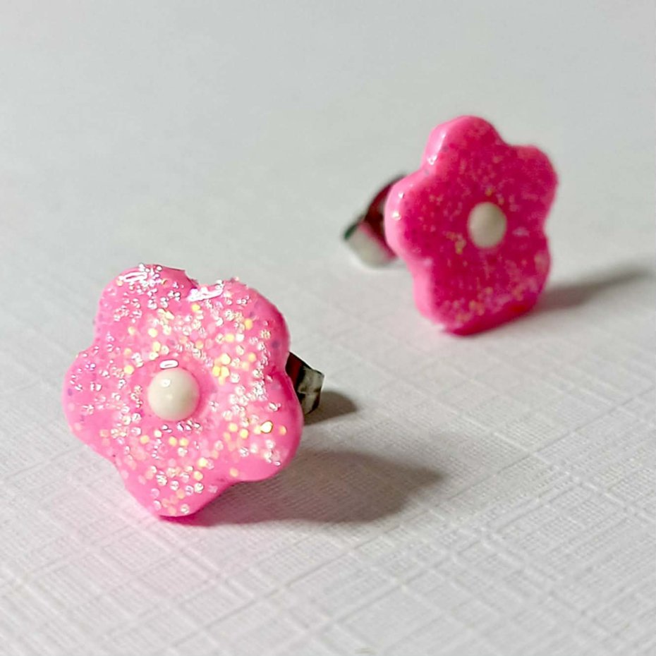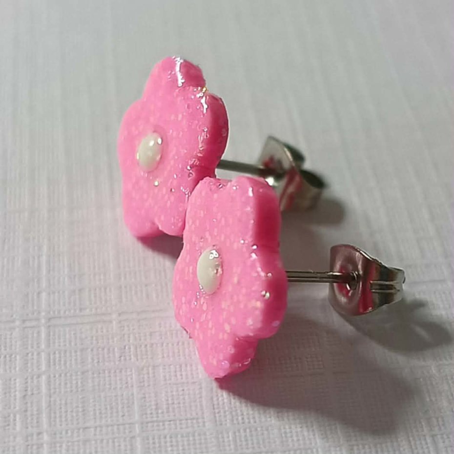 Delikatne kolczyki w kształcie małych, różowych kwiatków
