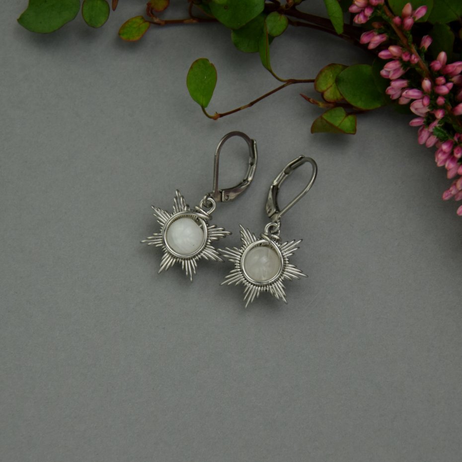Tagi: #kamień księżycowy, #kolczyki, #słoneczka, #wire wrapping