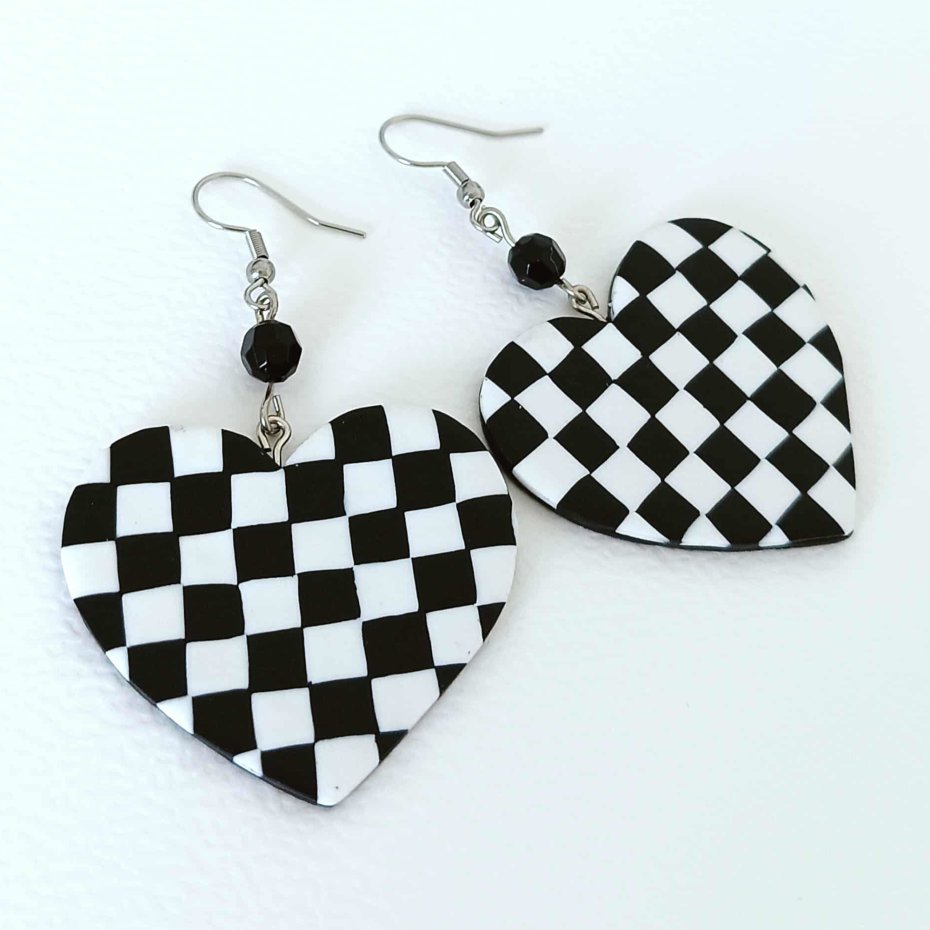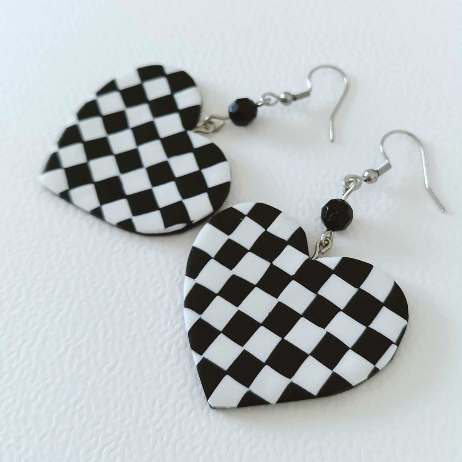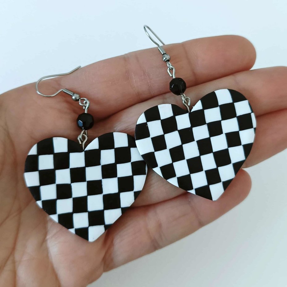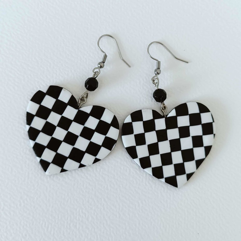 Czarno-biała, geometryczna kratka w kształcie serca nadaje kolczykom nowoczesny, a jednocześnie nostalgiczny charakter. Doskonałe na codzień, jak i na wyjątkowe okazje.