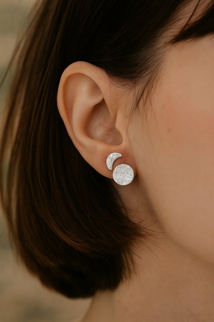 Zdjęcie pokazuje kolczyki z bliska,eksponując fakturę i połysk srebra,idealne do pokazania jakości wykonania.