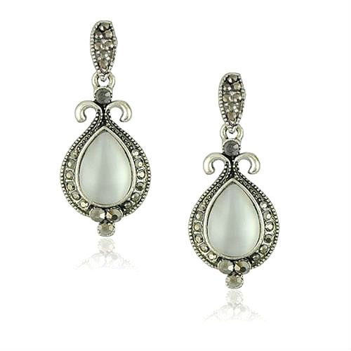 Piękne kolczyki w całości wykonane ze srebra tybetańskiego (bardzo trwały stop srebra, miedzi, cynku, niklu, niekiedy z dodatkiem manganu i cyny). Kolor ciemnego srebra.