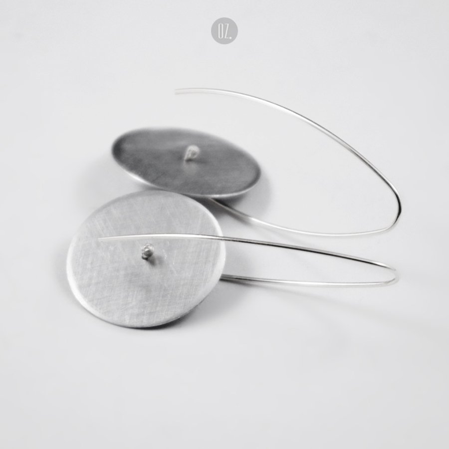 Długie kolczyki wykonane ze srebra i aluminium, lekkie mimo dużych rozmiarów.
