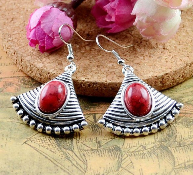 Piękne kolczyki w całości wykonane ze srebra tybetańskiego (bardzo trwały stop srebra, miedzi, cynku, niklu, niekiedy z dodatkiem manganu i cyny).