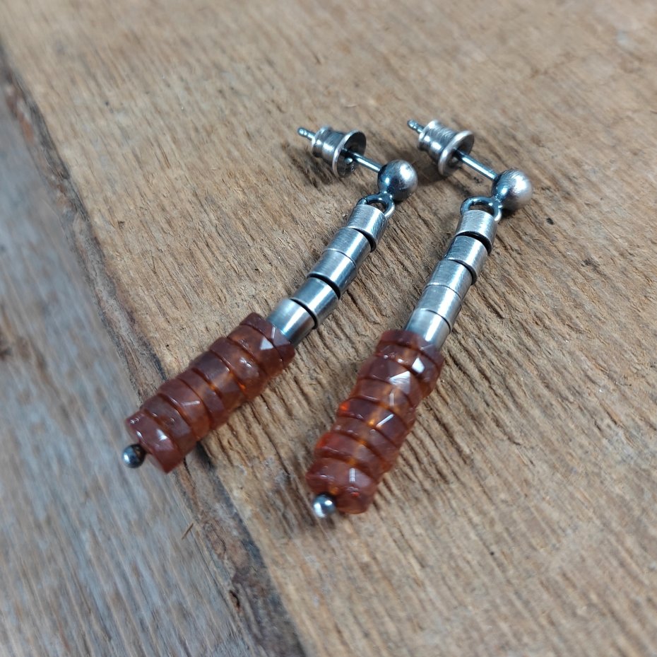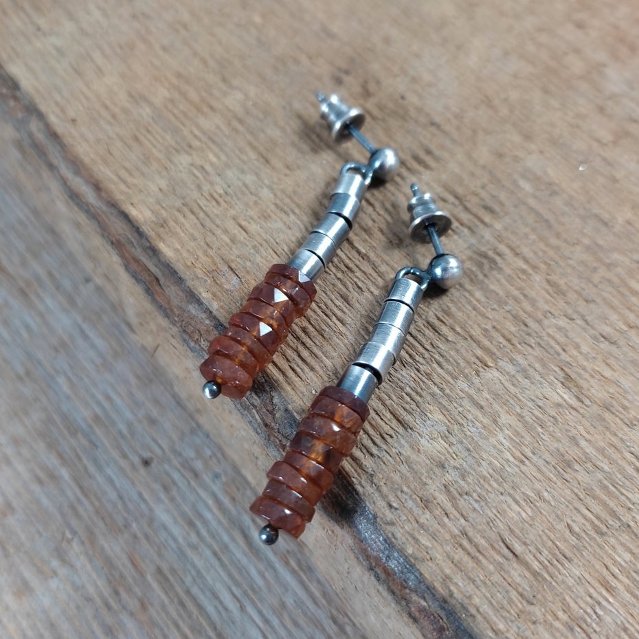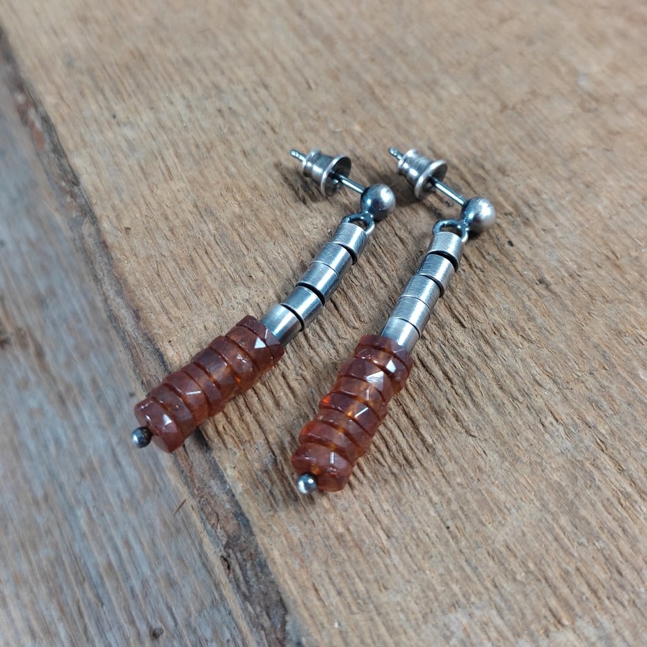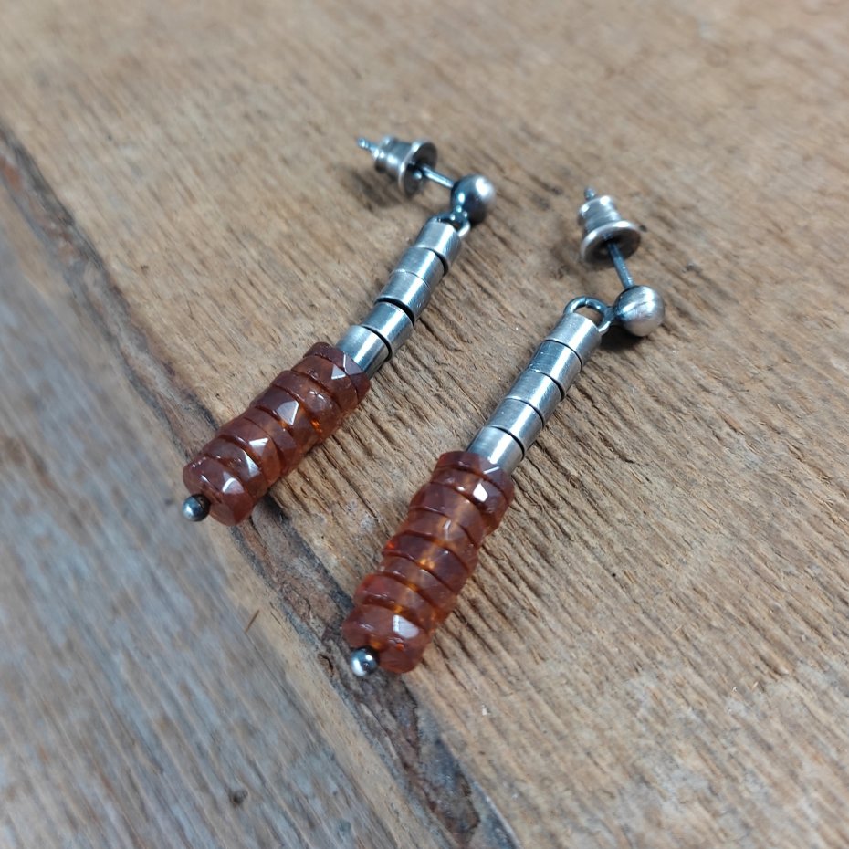 Kolczyki z talarkami granatu - hessonit o średnicy 6 mm.