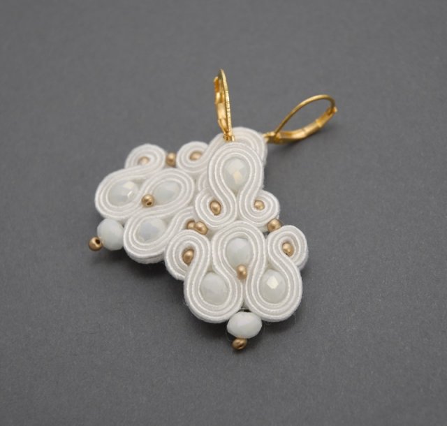 oferuję kolczyki zrobione techniką sutasz, ozdobione fasetowanymi koralikami