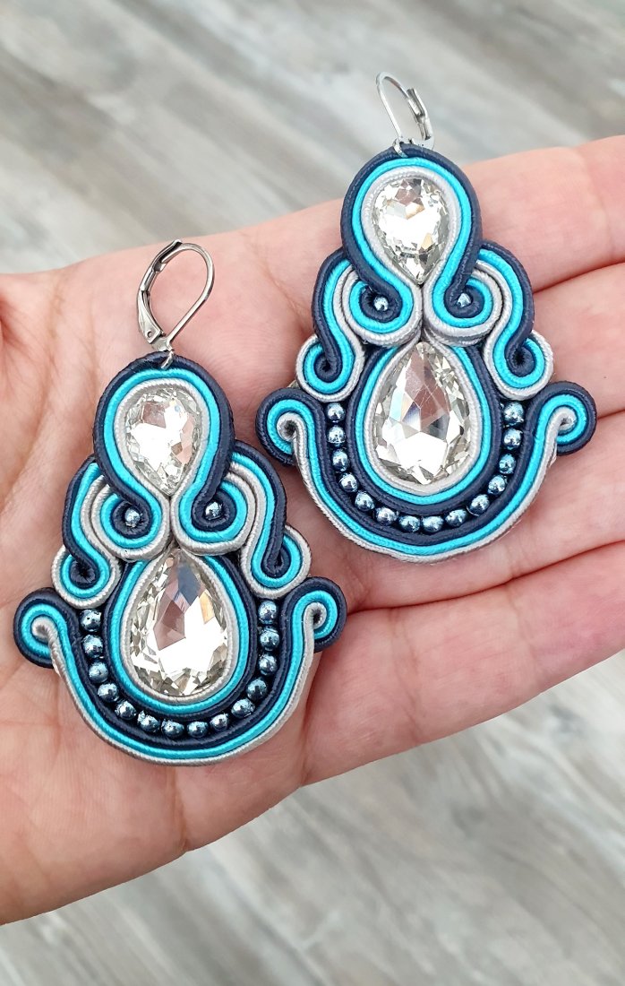 Lekkie kolczyki wykonane pracochłonną techniką haftu sutasz.