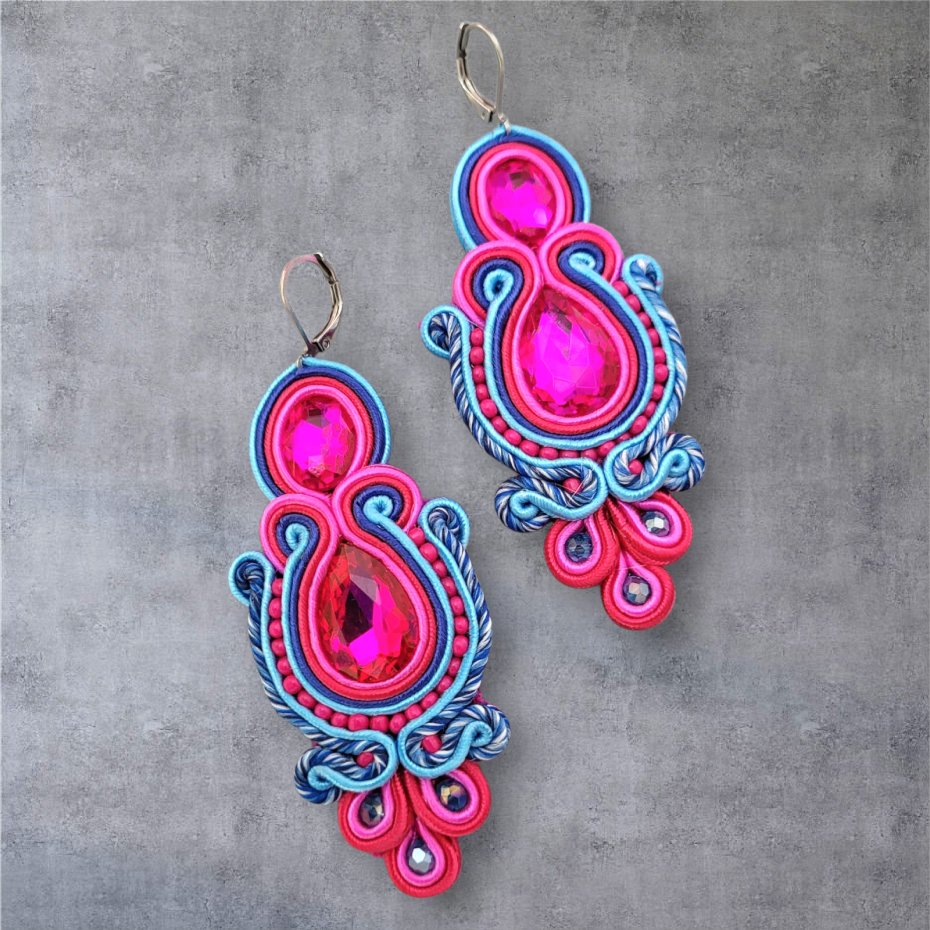 Lekkie kolczyki wykonane pracochłonną techniką haftu sutasz.