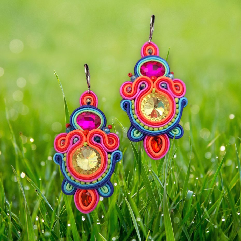 ekkie kolczyki wykonane pracochłonną techniką haftu sutasz.