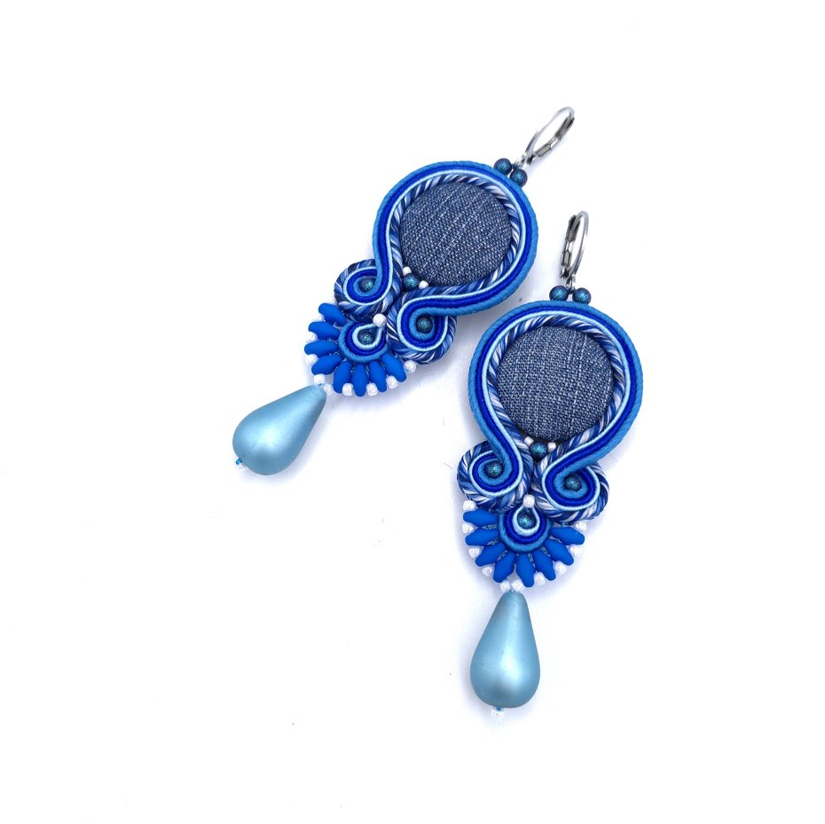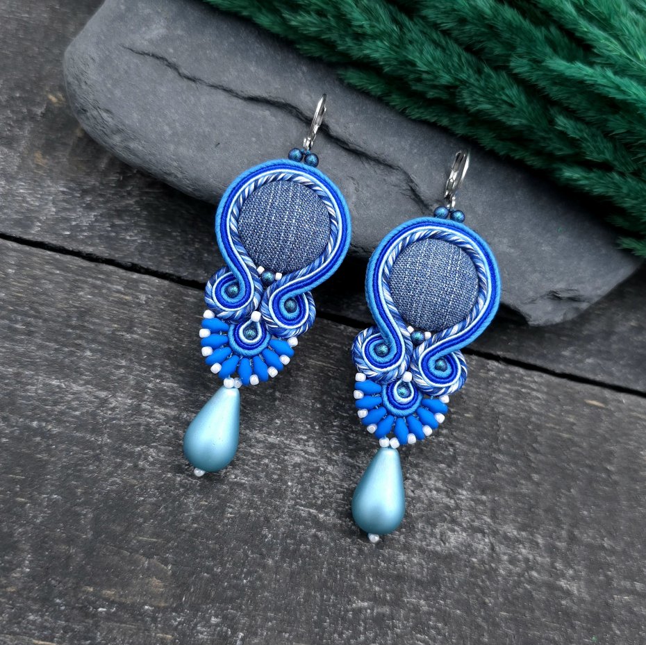Kolczyki sutaszowe z dżinsu w odcieniach niebieskiego, stworzone to idealne połączenie elegancji i codziennego luzu.