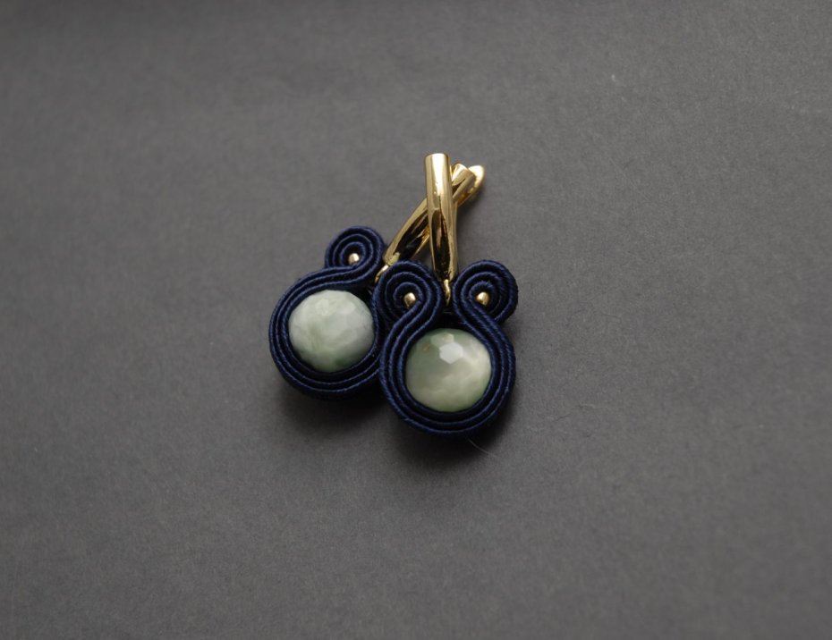 oferuję kolczyki zrobione techniką sutasz, ozdobione fasetowanymi angelitami pawimi i fasetowanymi agatami.