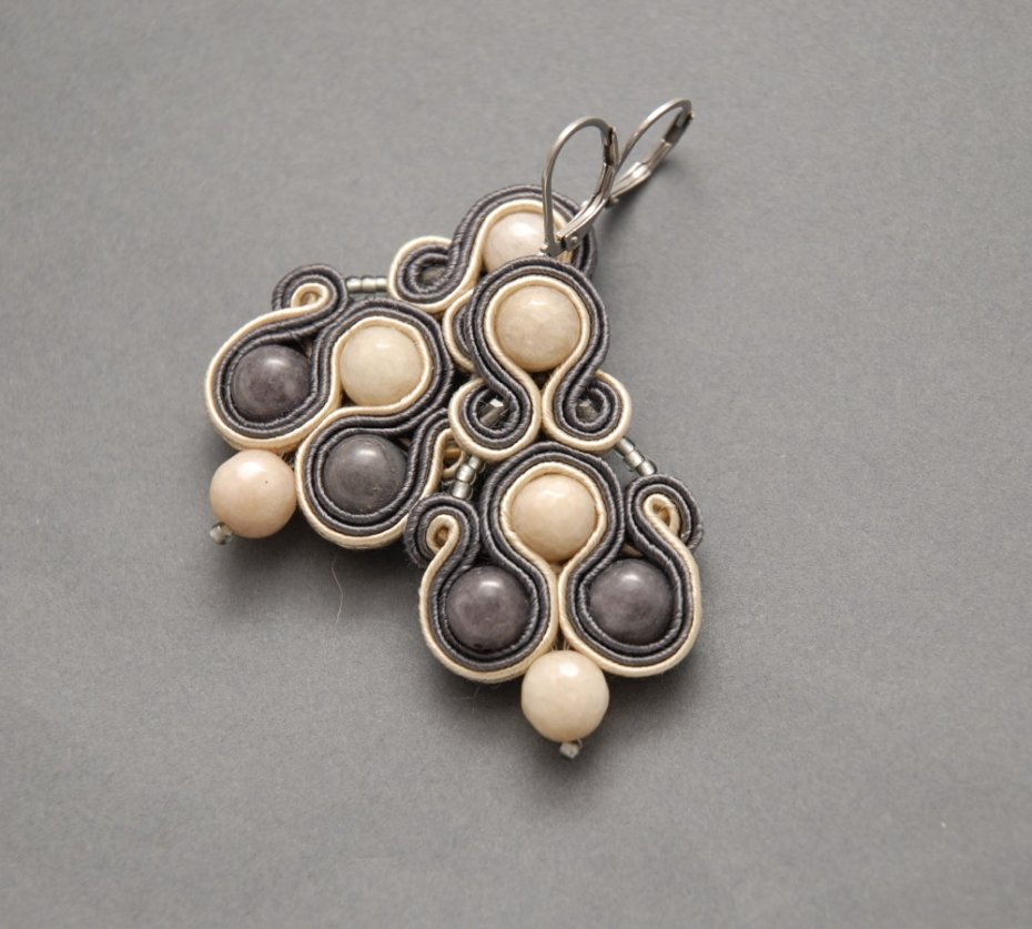 oferuję kolczyki zrobione techniką sutasz, ozdobione fasetowanymi jadeitami