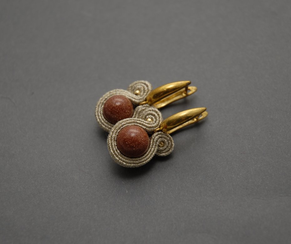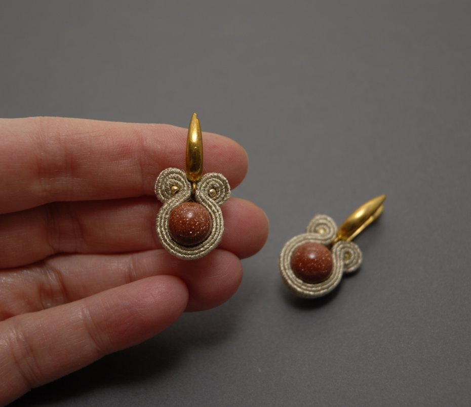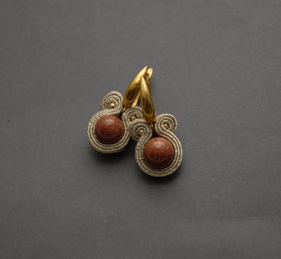 oferuję kolczyki zrobione techniką sutasz, ozdobione piaskiem pustyni i koralikami