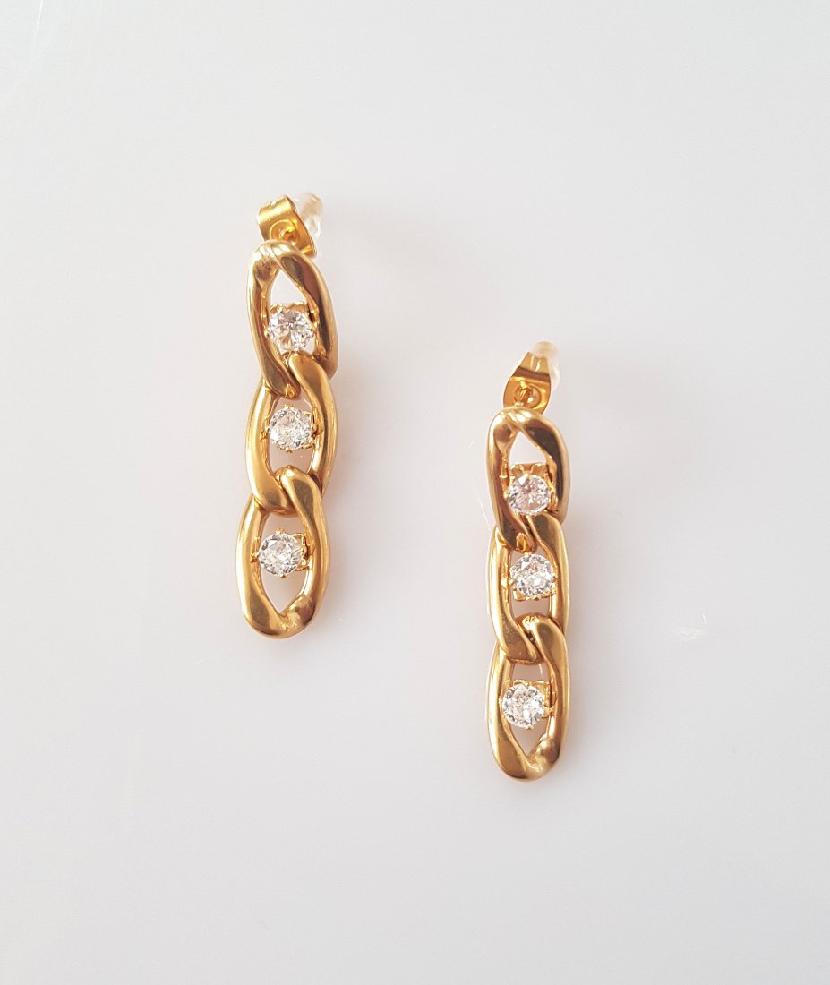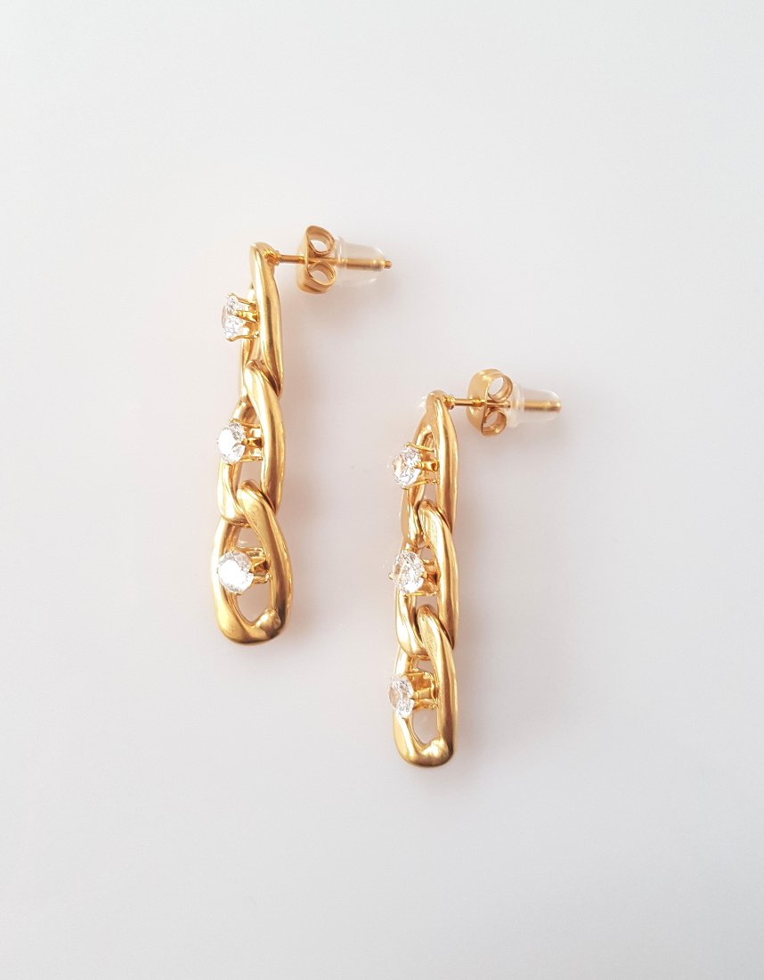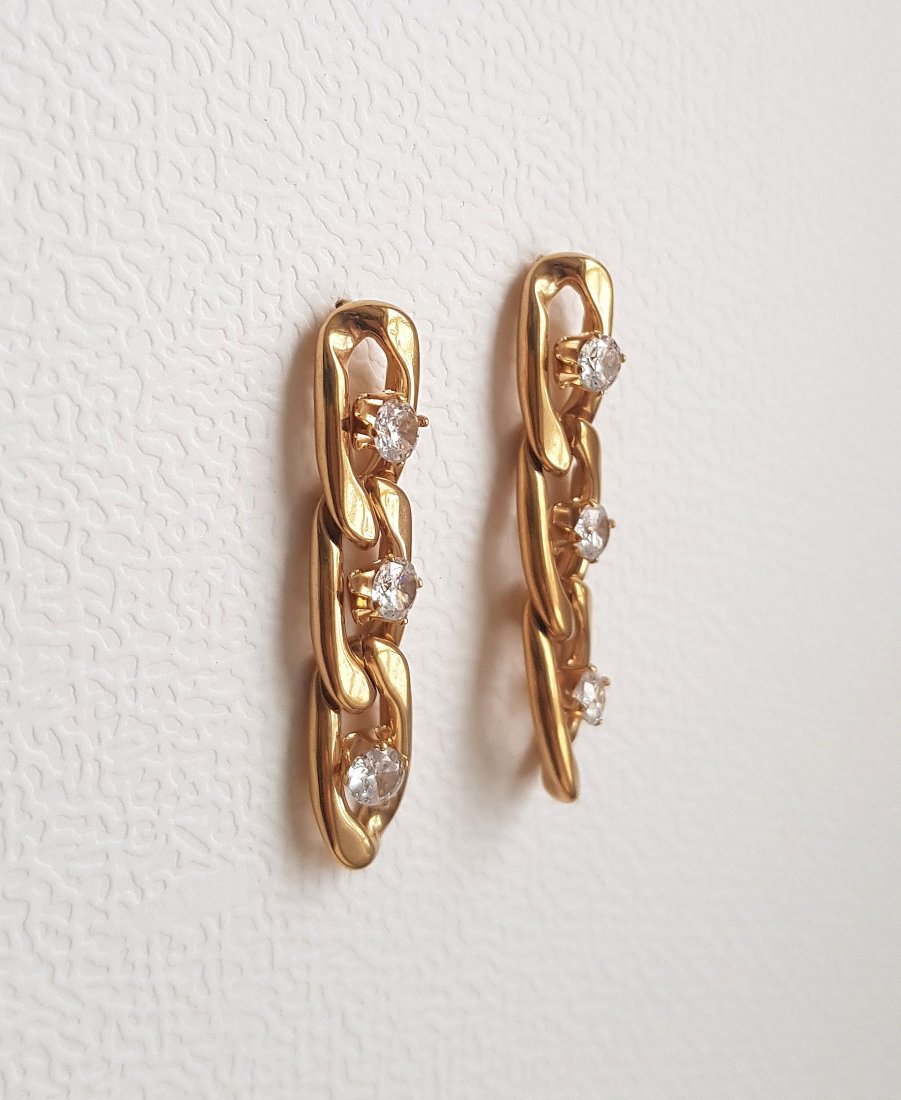 Wykonane z pozłoconej stali szlachetnej i ozdobione cyrkoniami, które pięknie odbijają światło.