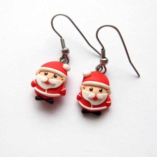 Zabawne kolorowe kolczyki wykonane ręcznie z masy termoutwardzalnej Fimo w kształcie Mikołajów. Wielkość kolczyków to ok. 14 mm (32 mm z biglami). Bigle wykonane są ze stali chirurgicznej. Kolczyki świetne na prezent. Zobacz moją całą galerię w Decobazaar!