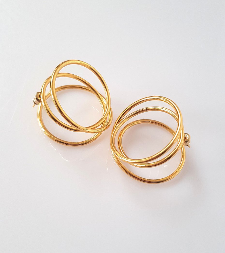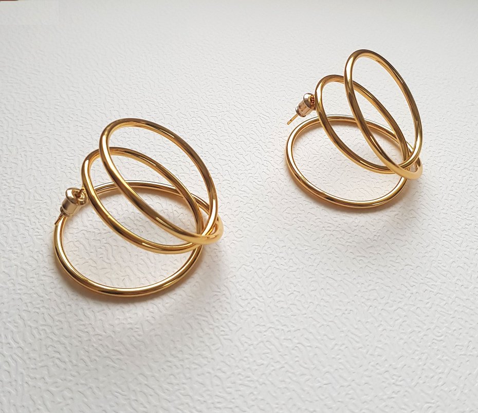 Geometryczne, nowoczesne, przestrzenne, wyraziste kolczyki sztyfty.
