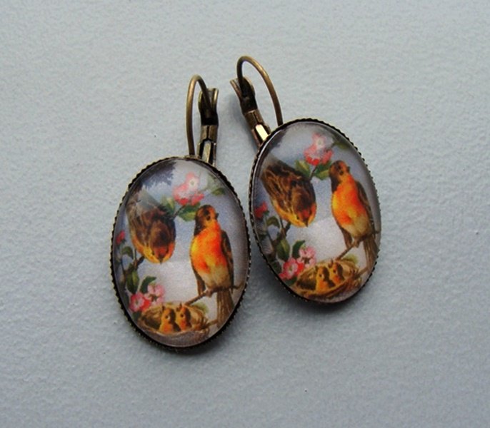 5.  > Kolczyki szklane kaboszony grafika ptaki (nr 7103112)