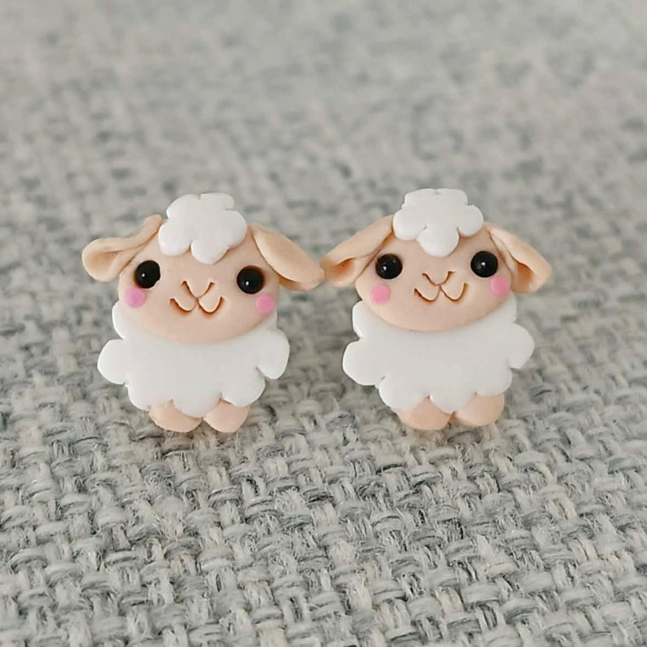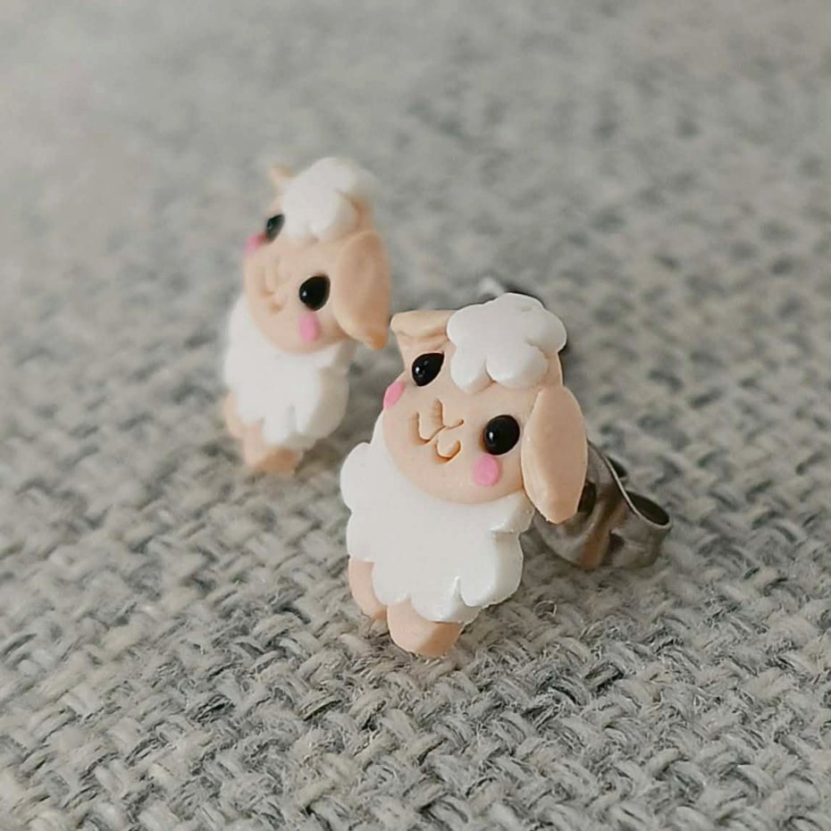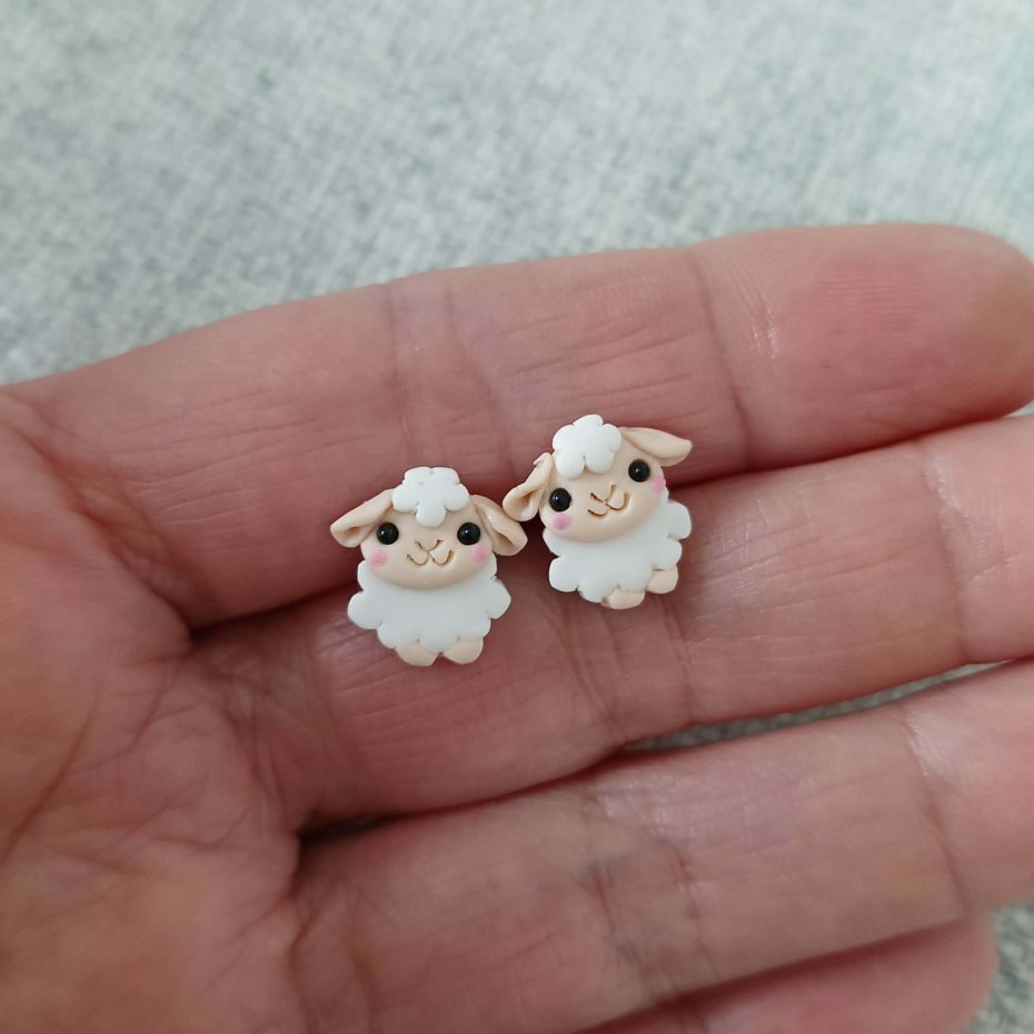 Ręcznie wykonane kolczyki sztyfty w kształcie baranków. Projekt inspirowany motywem wiosny i Wielkanocy. Prosta forma i jasna kolorystyka sprawiają, że kolczyki są subtelnym, tematycznym dodatkiem.