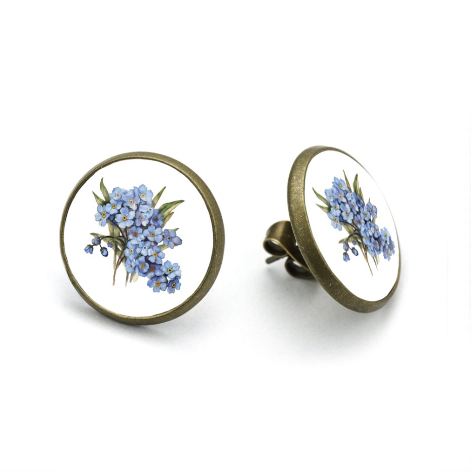 Delikatne kolczyki sztyfty z motywem niezapominajek w stylu akwareli.