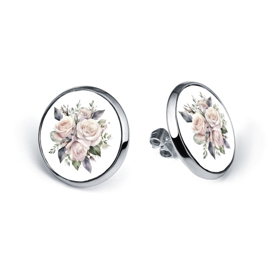 Eleganckie kolczyki sztyfty z pastelowymi różami, wykonane ręcznie w małej pracowni.