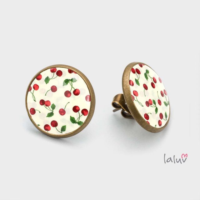 Ręcznie robione kolczyki z wysokiej jakości grafiką zamkniętą pod wypukłym szkiełkiem i oprawioną w antyalergiczną bazę w kolorze antycznego złota. Każda para zaopatrzona jest w zatyczki w kolorze bazy zapobiegające wypadaniu kolczyków z uszu. ;)
