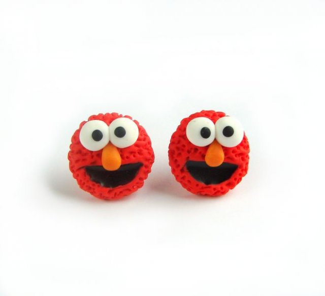 Urocze kolczyki sztyfty z postacią Elmo wykonane własnoręcznie z fimo. Wielkość: 1,6 cm. Zatyczki w zestawie