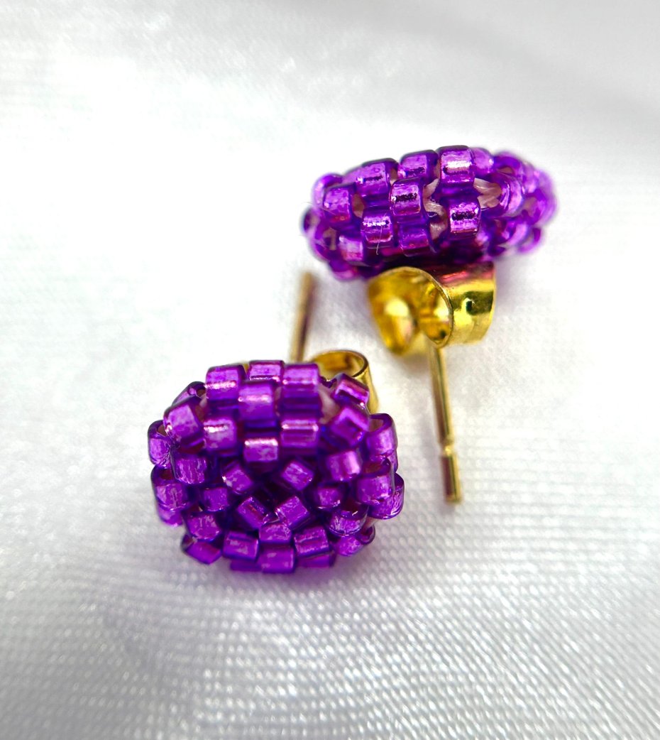 Kolczyki fioletowe z koralików MIYUKI. Bardzo delikatne, ale bardzo wyraziste kolczyki/sztyfty :)