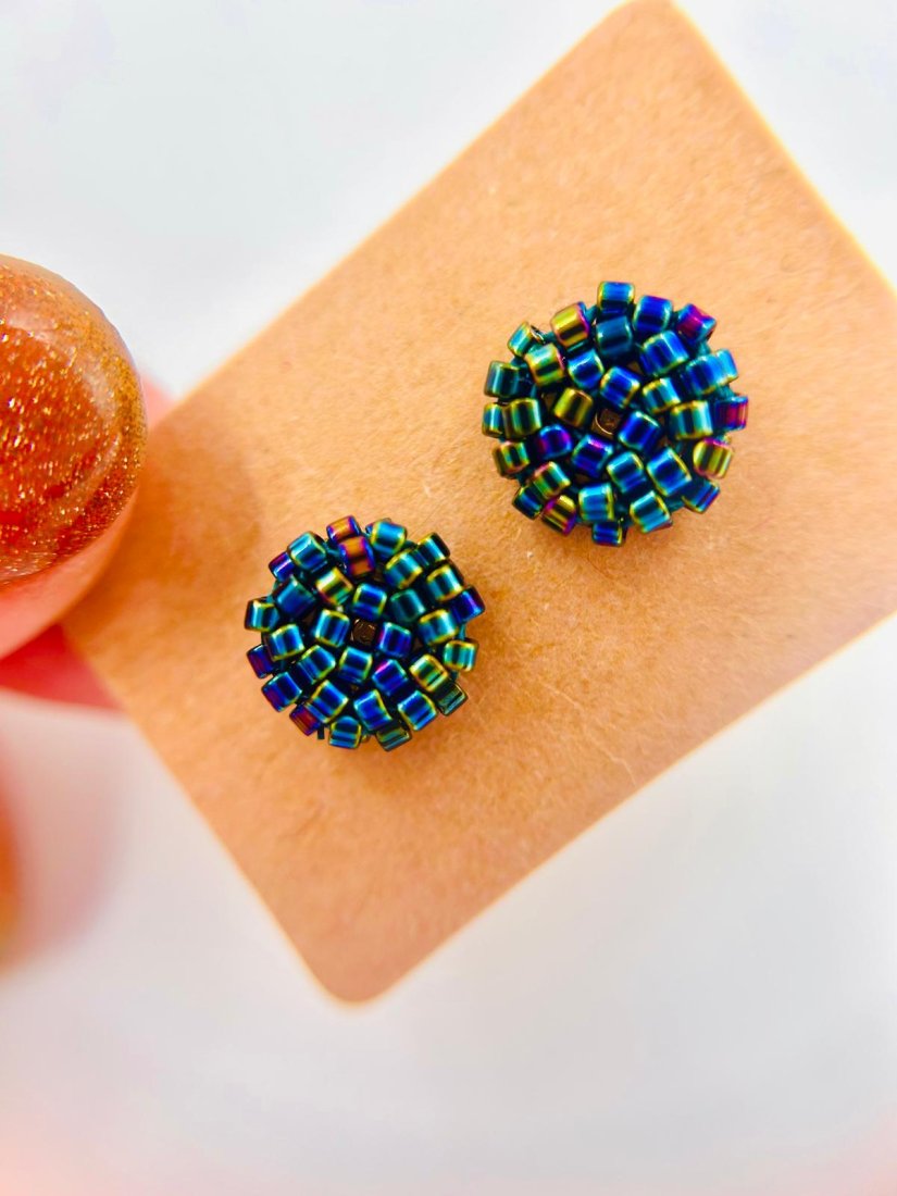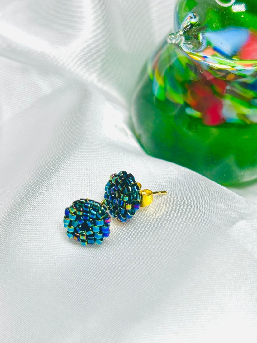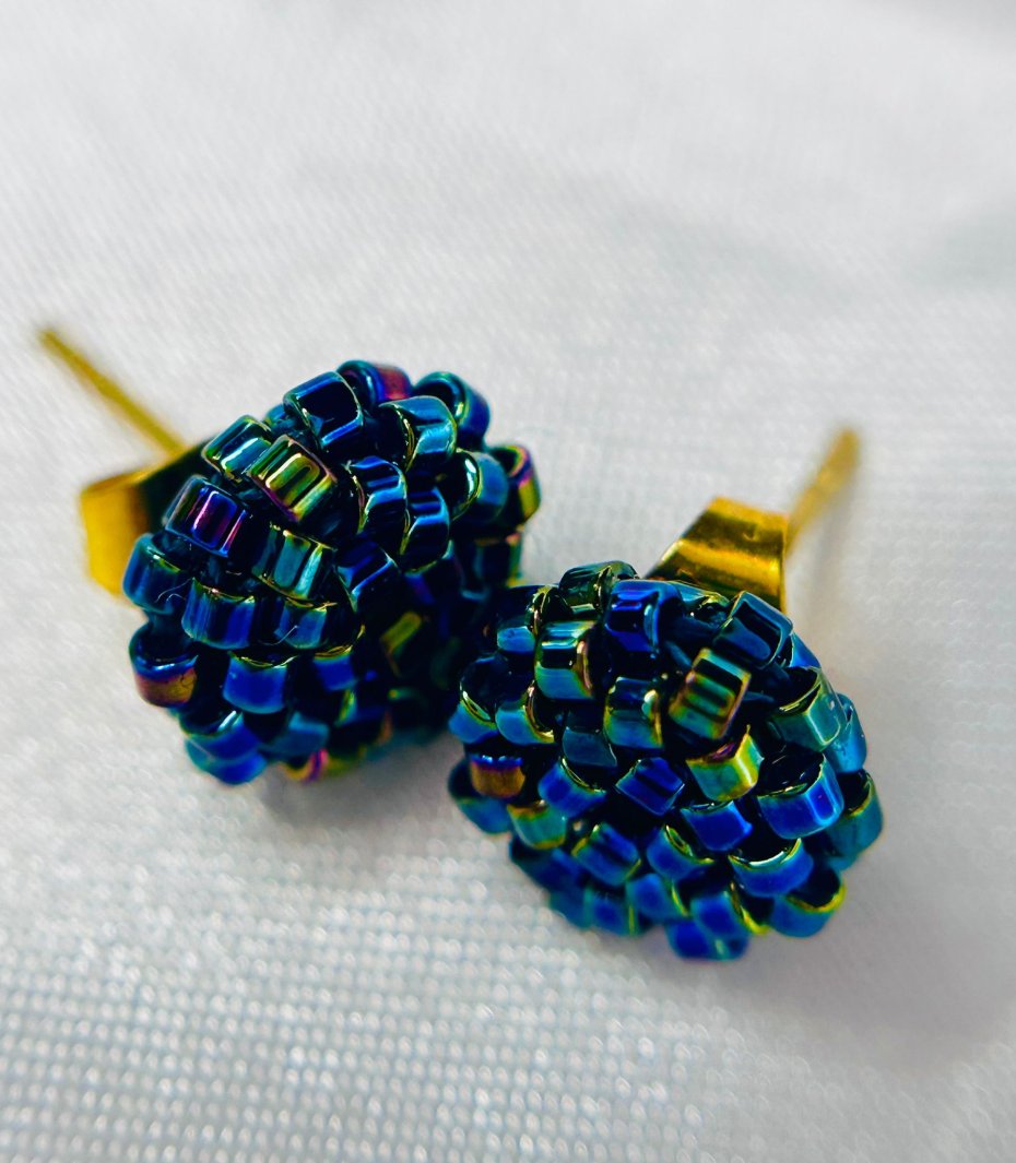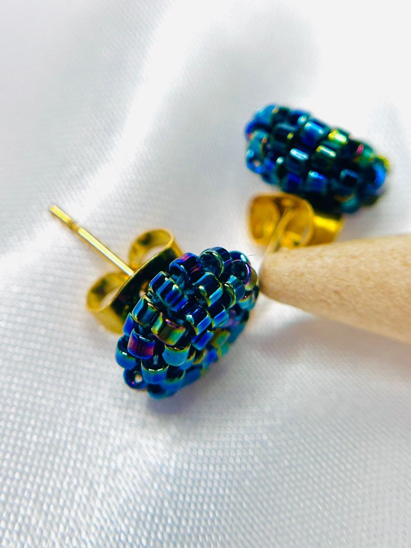 Kolczyki/sztyfty granatowe/kameleon :)Ręcznie robione z koralików Miyuki