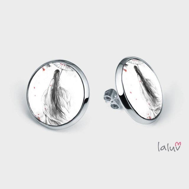 Ręcznie robione kolczyki z wysokiej jakości grafiką zamkniętą pod wypukłym szkiełkiem i oprawioną w antyalergiczną bazę w kolorze srebrnym. Każda para zaopatrzona jest w zatyczki w kolorze bazy zapobiegające wypadaniu kolczyków z uszu. ;)