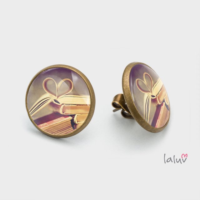Ręcznie robione kolczyki z wysokiej jakości grafiką zamkniętą pod wypukłym szkiełkiem i oprawioną w antyalergiczną bazę w kolorze antycznego złota. Każda para zaopatrzona jest w zatyczki w kolorze bazy zapobiegające wypadaniu kolczyków z uszu. ;)