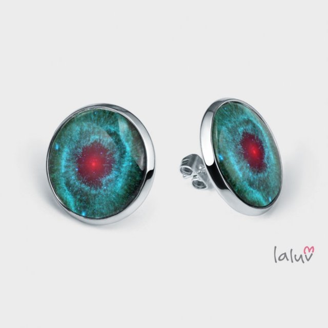 Ręcznie robione kolczyki z wysokiej jakości grafiką zamkniętą pod wypukłym szkiełkiem i oprawioną w antyalergiczną bazę w kolorze srebrnym. Każda para zaopatrzona jest w zatyczki w kolorze bazy zapobiegające wypadaniu kolczyków z uszu. ;)