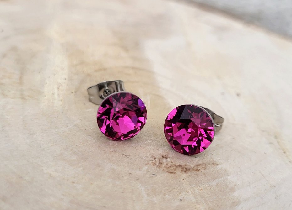 Oryginalny kryształek Swarovskiego XIRIUS Chaton o szlifie 1088 w kolorze fuchsia o śr. 8mm.