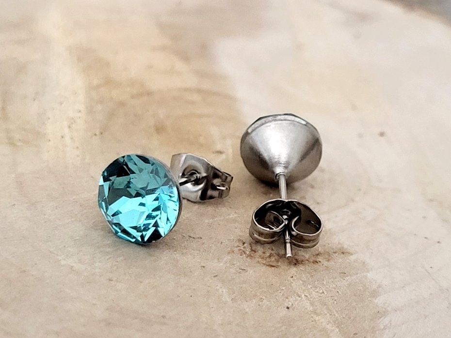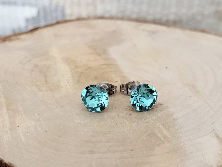 Oryginalny kryształek Swarovskiego XIRIUS Chaton o szlifie 1088 w kolorze light turquoise o śr. 8mm.