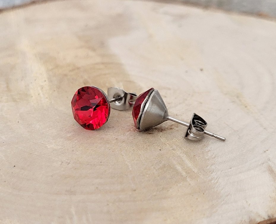 Oryginalny kryształek Swarovskiego XIRIUS Chaton o szlifie 1088 w kolorze siam o śr. 8mm.