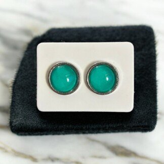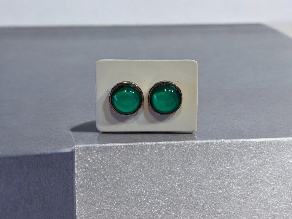 Delikatne i minimalistyczne kolczyki-sztyfty w odcieniu morskiej zieleni przyciągają uwagę subtelnym blaskiem i głębią koloru.
